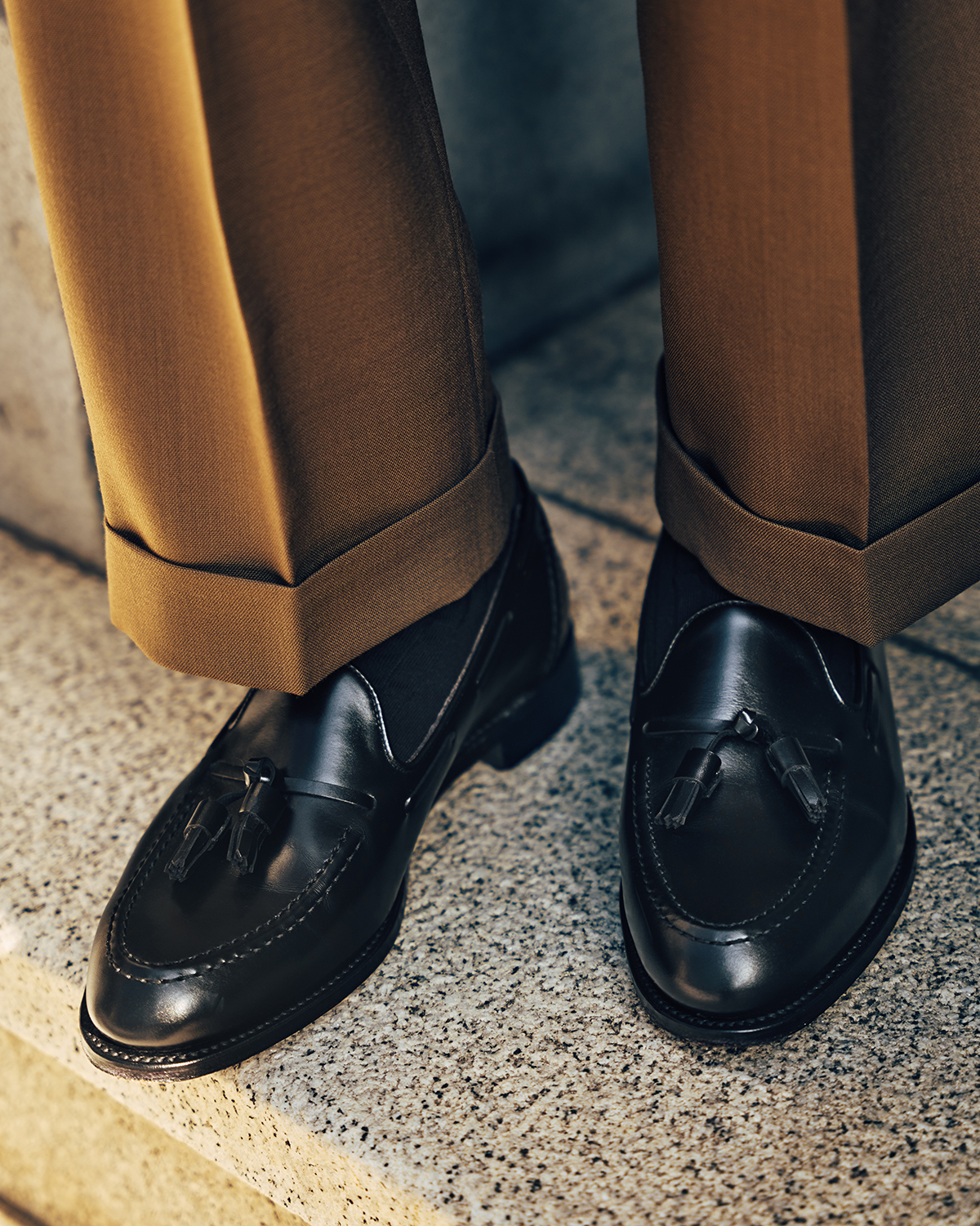 装飾的なディテールを持ちながらも過度に主張することはなく、ドレスシューズの端正な印象とローファーの軽やかな履き心地を併せ持つ点も、このスタイルの魅力です。