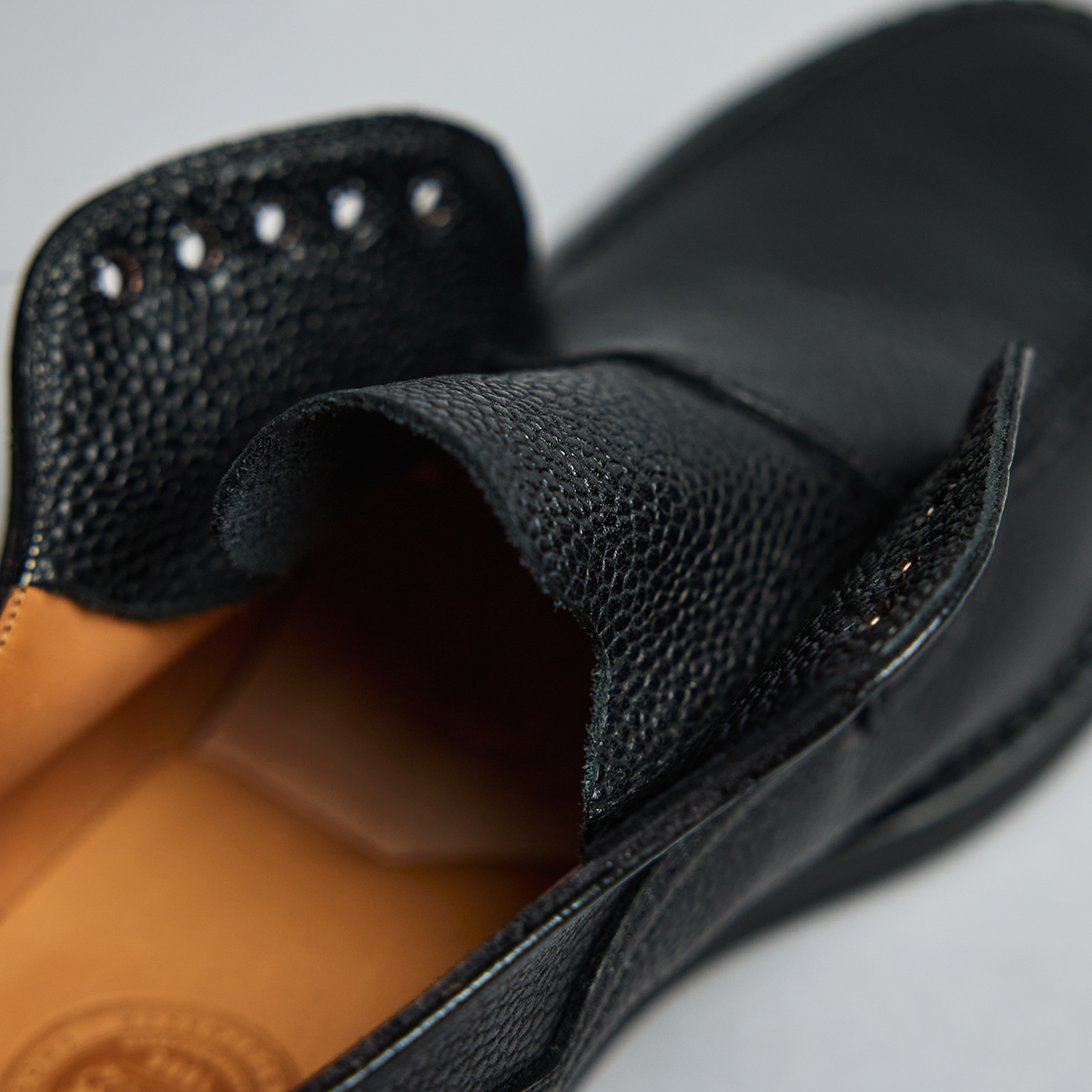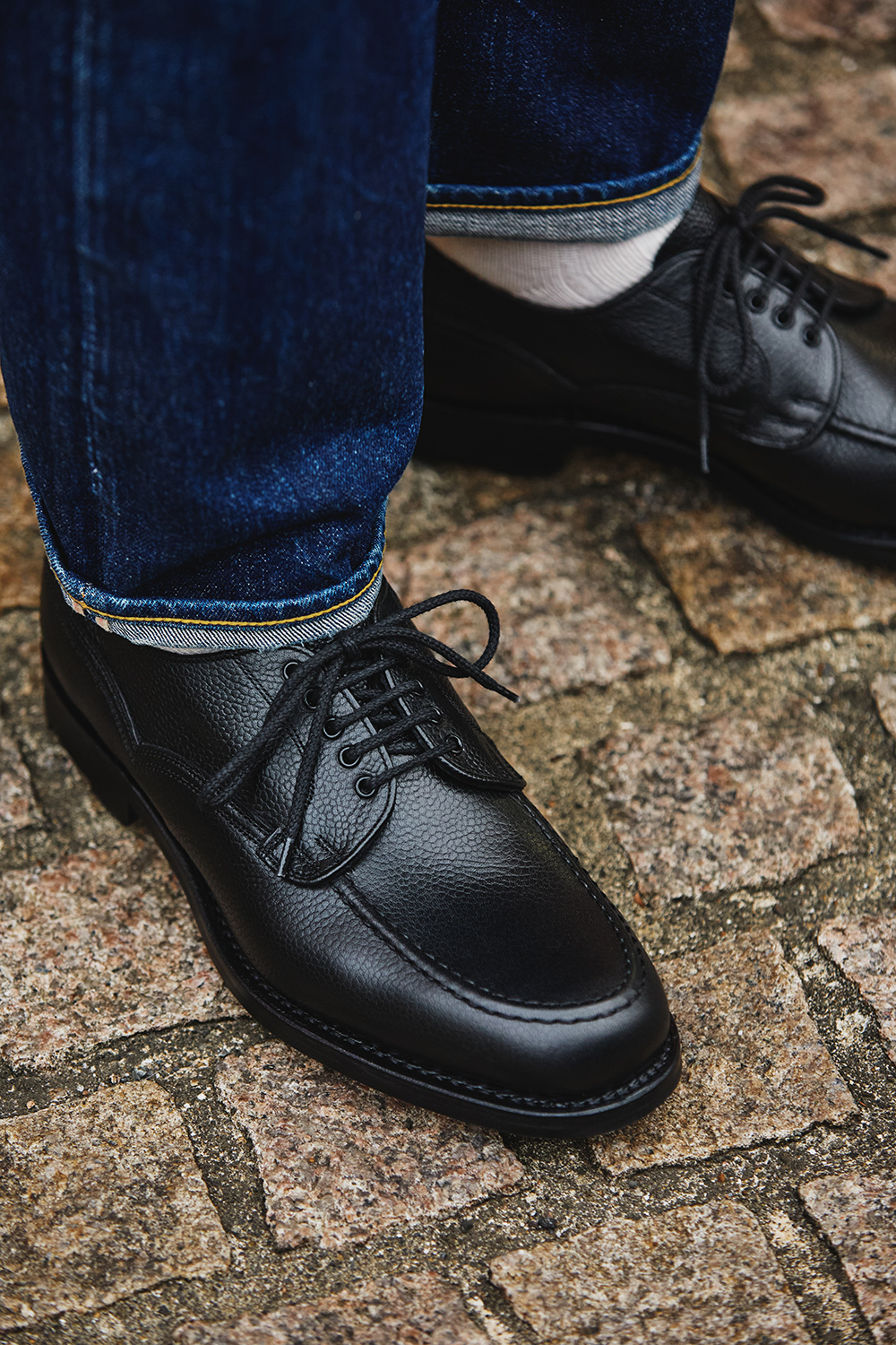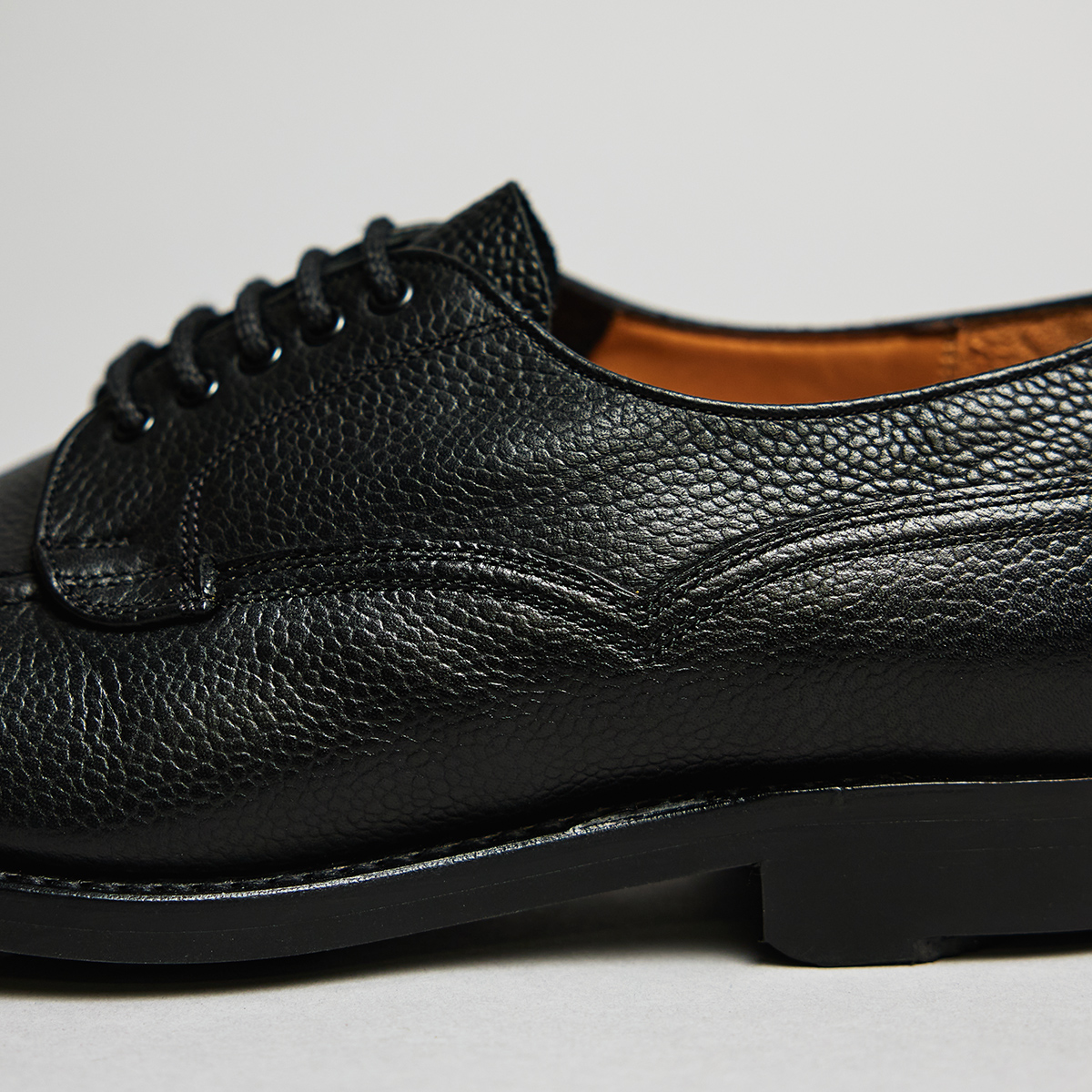 無骨な見た目ながら、Uチップの上品さも漂わせる KEITH(キース)。数年前にスムースレザーで登場したモデルですが、今回は シボ革で登場。カジュアルにもセミフォーマルにも合わせやすく、ドレスやフォーマルの堅さを求めない、昨今のライフスタイルにもマッチしています。搭載された様々なディテールは、機能や気軽さを求める人々にとって、日常に寄り添う頼もしい一足 となるでしょう。