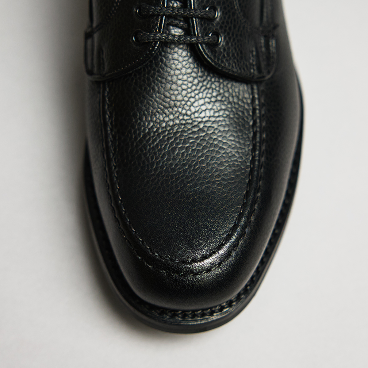 ジョセフ チーニーの代表作である「CAIRNGORM Ⅱ R」と同じLAST4436を使用したモデル。クラシックなラウンドトゥではありますが、丸みのあるトゥシェイプが無骨さと品の高さを両立させる佇まいです。トゥやボールジョイントに程よい余裕を持たせ、長時間履いてもストレスを感じにくい設計なのも嬉しいディテール。